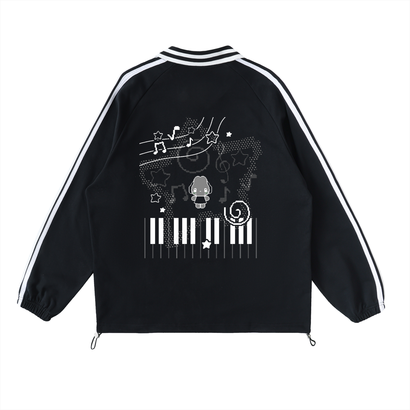 Headphone Bunny Black Contrast Striped Lapel Collar Sweatshirt