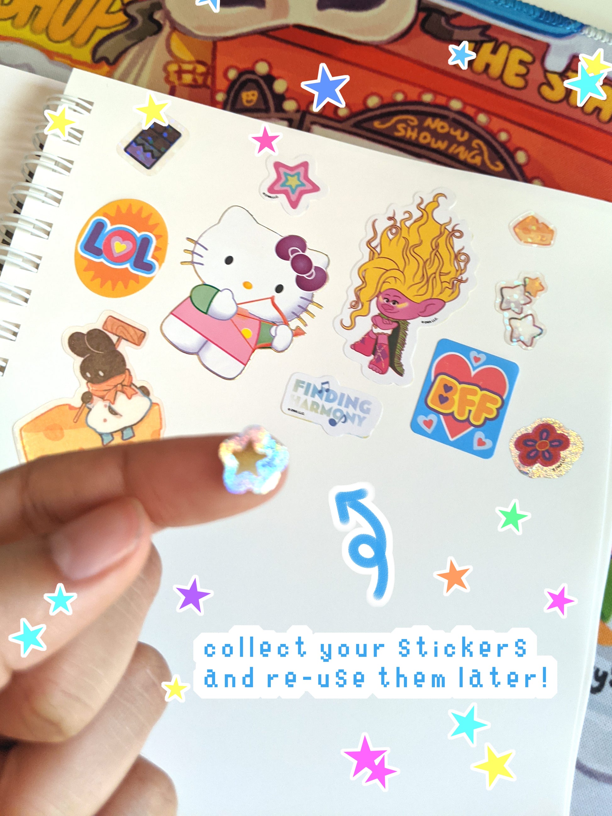 this soft cover sticker book comes with 50 inner lined paper sheets, coated paper back and front covers, and a layer of printed PVC on both sides! wow isn't that cool?? yes it is!