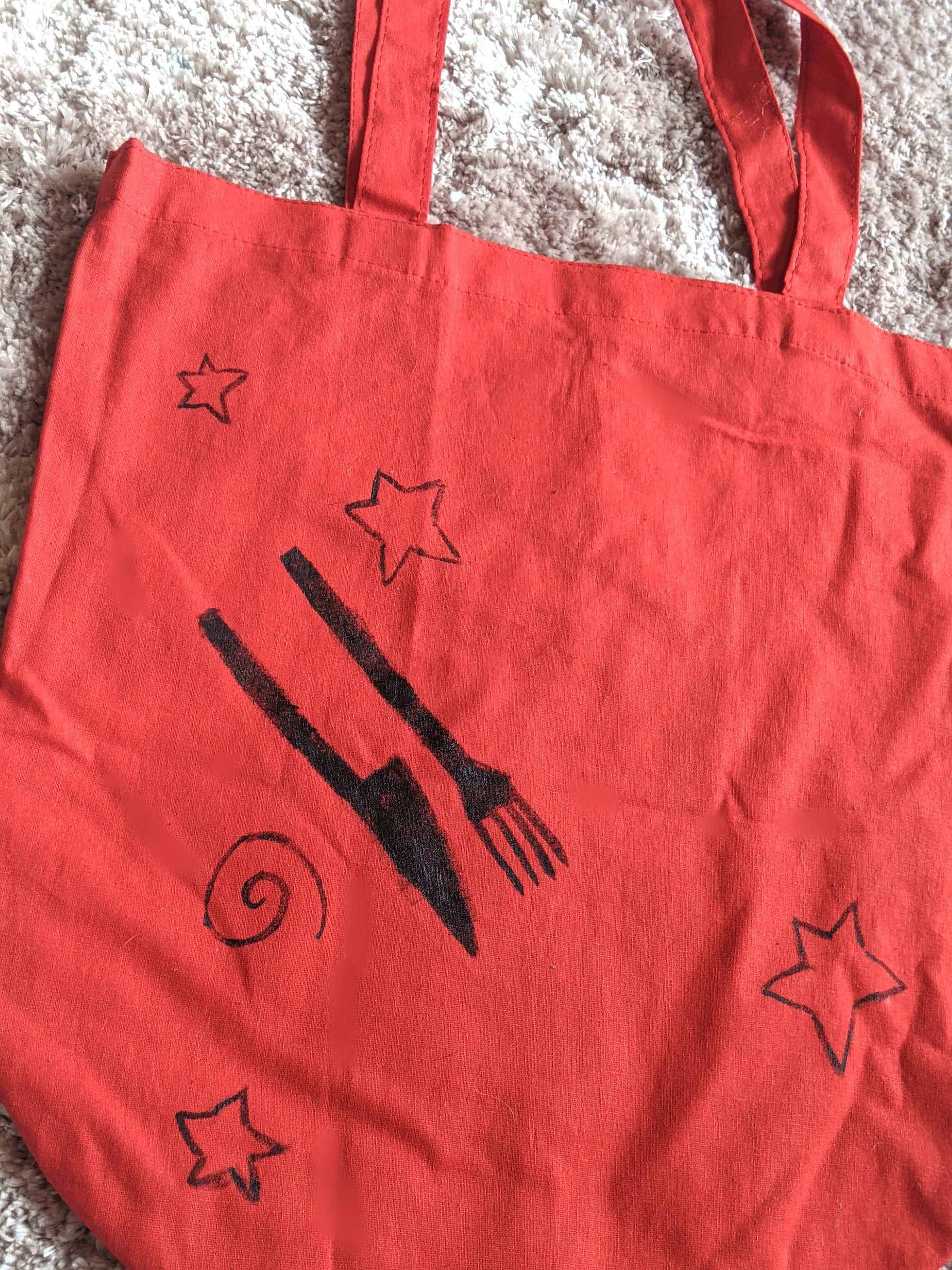 It’s a bag shaped kind of like a tomato?? Loosely shaped like a tomato?? It’s definitely a tote bag anyway 🍅 this is one of a kind and hand made!